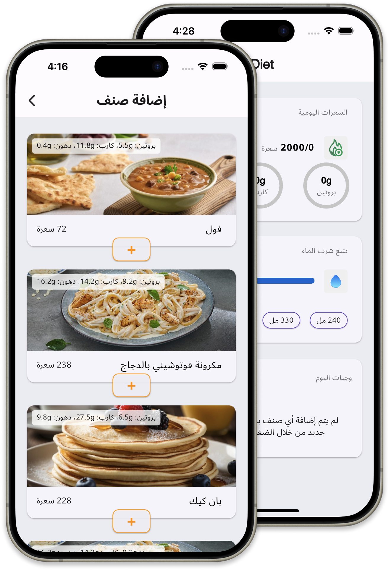 DDiet is a personal mobile app concept designed to help individuals track their daily calorie intake, macronutrients, and water consumption.